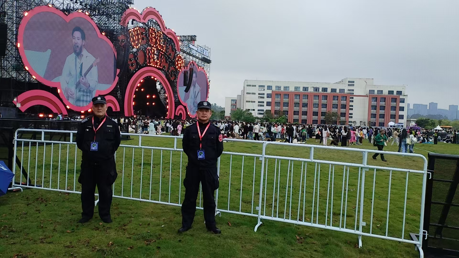 4月18日至19日,2026喜力星银·泡泡岛音乐与艺术节·东南站在福州市长乐区体育中心成功举办。面对连日阴雨天气和密集人流的双重考验,福州市保安服务有限公司(以下简称“福州保安公司”)统筹调配1770班次保安力量及12只搜爆犬, 以专业过硬的安保服务和高度自觉的责任担当,圆满完成此次安全保卫任务,赢得公安机关、活动主办方、参演艺人及现场观众的充分肯定与高度赞誉。