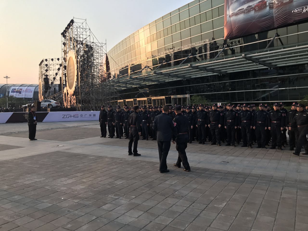 图为保安员岗前动员大会。现场负责人对各项安全工作进行重点强调,并对现场安保布置安排。