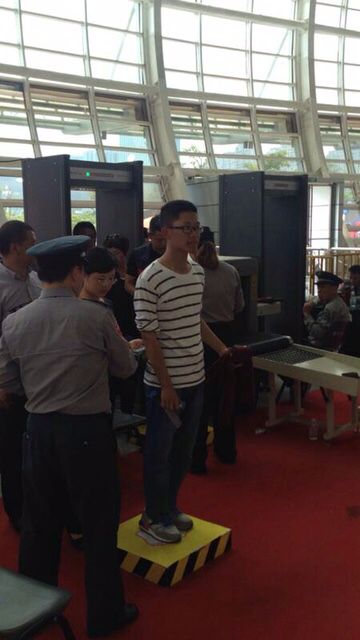 图为车展现场安检工作。我司保安员认真按照规定对每位入场人员进行细致的安检。