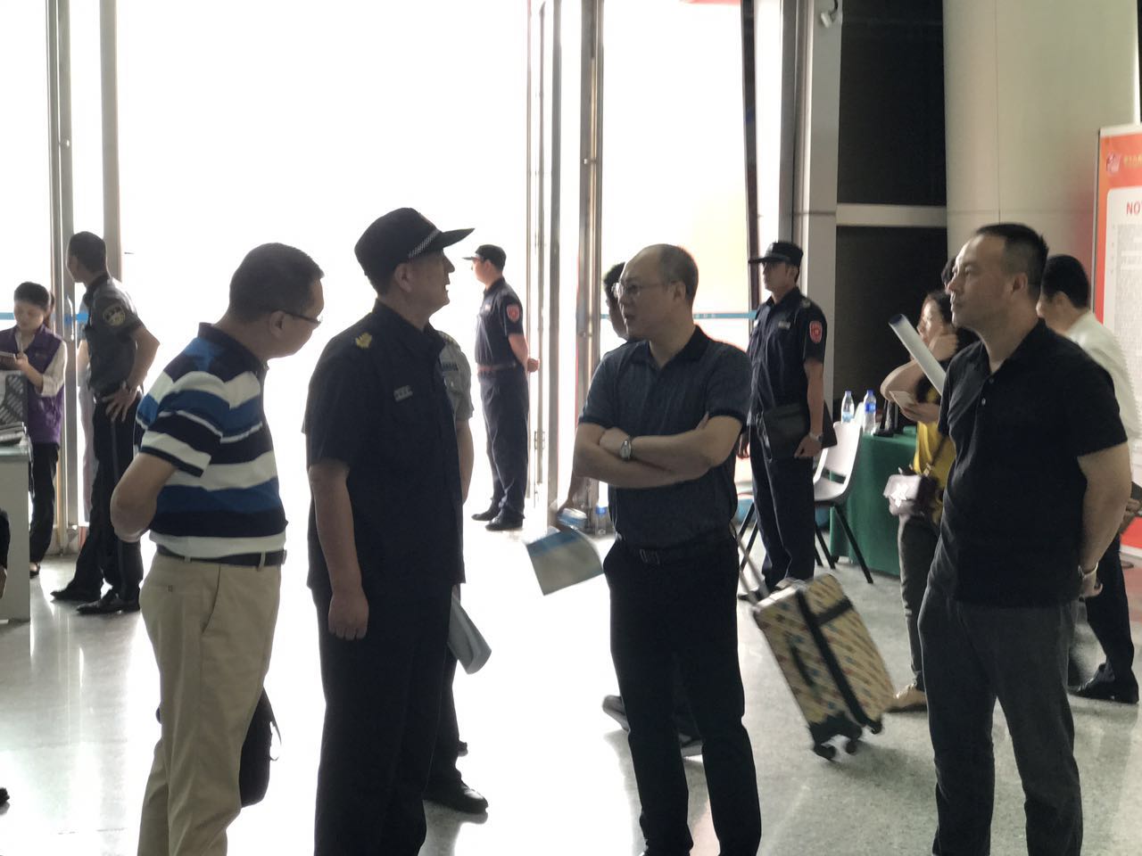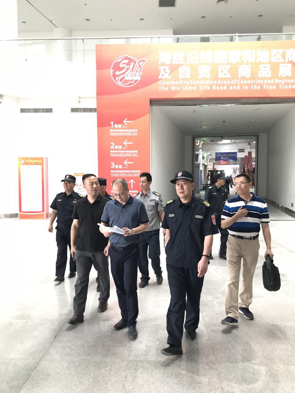 2017年5月16日上午,集团领导黄霄辉董事长、林涛副总经理亲赴福州海峡国际会展中心进行“2017年福州第十九届海峡两岸经贸交易会”前的实地检查、指导工作。我司高学堂总经理及相关部门人员陪同集团领导一起查看了会展中心的安保部署情况。