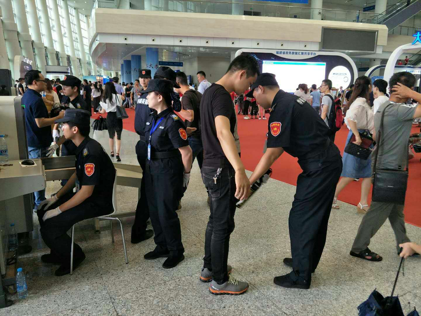 此次6.18展会共派出保安人员1650名,还特地从地铁分公司抽调专业安检人员参与本次安检工作。并派出搜爆犬18只,每天使用X光机8台。展会安保任务期间,我司执勤的保安员能听从命令,服从指挥,认真履职,确保了展会现场人员及参展商的安全,圆满完成了此次展会的各项安保任务,得到了主办方及公安机关的肯定。