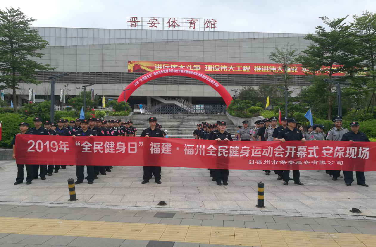 由福建省全民健身领导小组、福州市全民健身领导小组主办,由晋安区文体旅局承办的2019年“全民健身日”福建·福州全民健身运动会开幕式暨海峡两岸全民健身交流展示活动于2019年8月8日在晋安区体育馆举办。为确保此次活动期间的安全,受组委会委托,我司承担此次活动举办期间的安全保卫工作。此次活动共派出保安员90人,在执行该安保任务期间,保安人员着装整齐,保持良好的队容风纪,维持现场秩序,获得了主办单位的赞许。