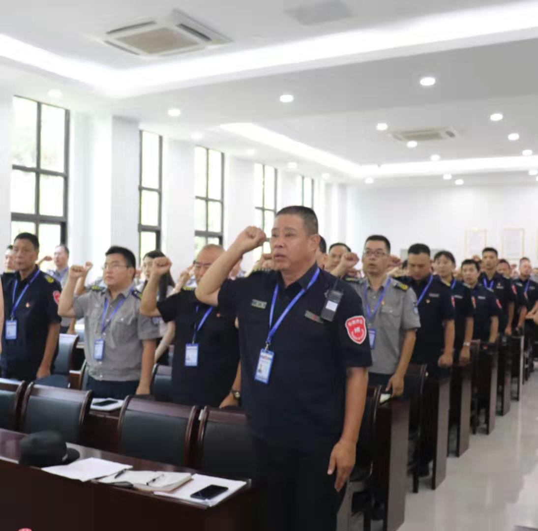 会上,全体参会人员起立共同奏唱国歌,首先由高学堂总经理作动员报告,肯定了全体员工过去8个月的辛勤付出和无私奉献,动员每一位员工在年末来临之际要有高度的紧迫感和使命感,在集团副总经理、公司董事长林涛带领下,克服重重困难,坚决完成集团下达的指标任务。随后,金融守押分公司经理林贤龙、安全守护分公司郭志勇和总经理助理兼地铁分公司陈笛代表各业务部门上台作表态发言。最后,集团副总经理、市保公司董事长林涛作重要指示,激励全体员工继续发扬“撸起袖子加油干”精神,共同为集团下达的指标而奋斗。