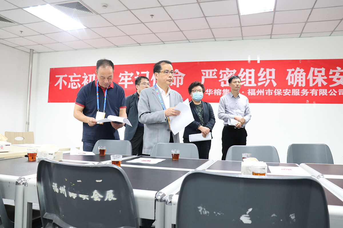 为进一步做好第四届数字中国建设峰会安保筹备工作,保障峰会平稳顺利举行,4月24日,华榕集团董事长金昌钦带队前往福州市保安服务有限公司设于海峡国际会展中心的“第四届数字中国建设峰会”市保公司指挥部。集团领导一行人详细听取了市保公司关于本届峰会的安保工作部署,并给出更严谨的管理建议,给予市保公司参与峰会安保工作的全体员工极大的鼓舞。