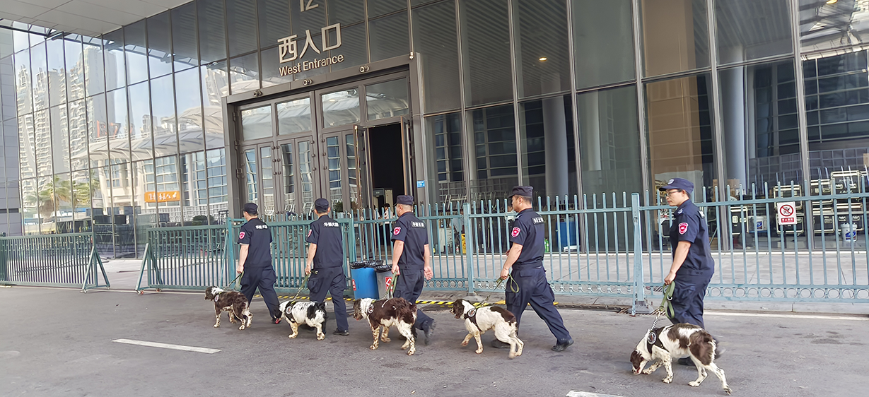 本次赴厦门执行任务共派出搜爆犬6只,并提前根据任务需要对犬只进行了强化训练,以确保在长途车程后犬只能以最佳状态投入工作。随着训导员一声令下,搜爆犬对活动现场进行了地毯式搜查,无论是空旷区域还是狭小部位都仔细做到无死角、全覆盖,排除一切可能存在的安全隐患。作为安保力量中不可或缺的一环,搜爆犬和训导员配合默契,始终保持高度专注,以高标准、严要求圆满完成安检搜爆任务,保障活动顺利进行。