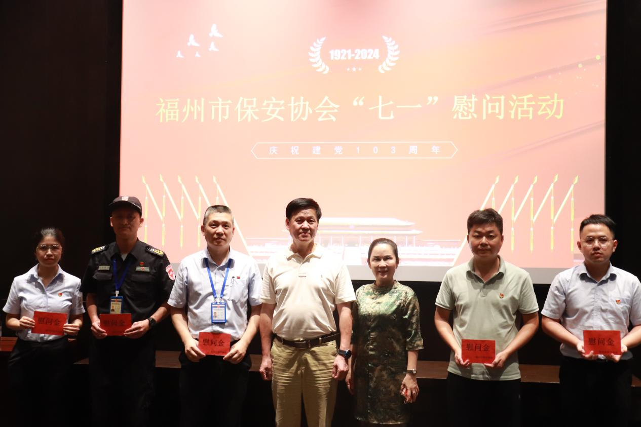 7月1日下午,福州市保安协会(下文简称“市保协”)兼合式党支部书记李忠带队到福州市保安服务有限公司(下文简称“福州保安公司”)开展“七一”党员慰问活动,向他们送上党的关怀和节日的祝福。福州保安公司党总支专职副书记张婷陪同慰问。